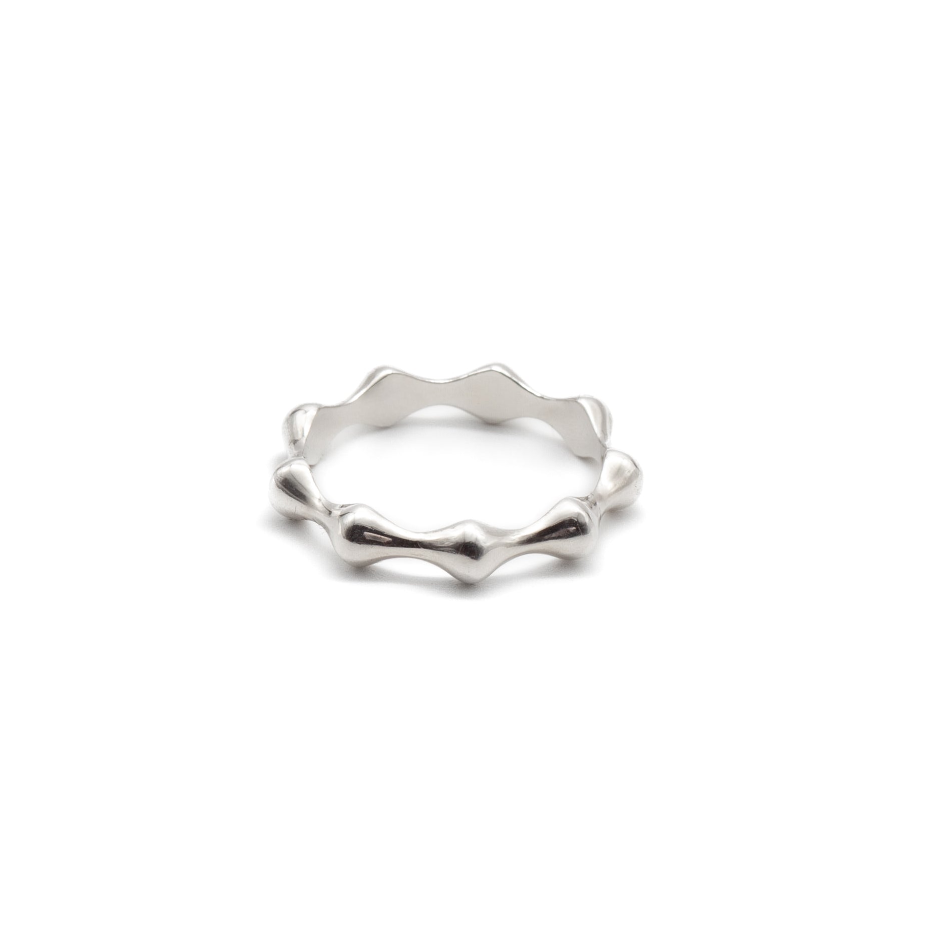 A silver wavy ring with shiny finish. Inspired by the motion of water and their flow